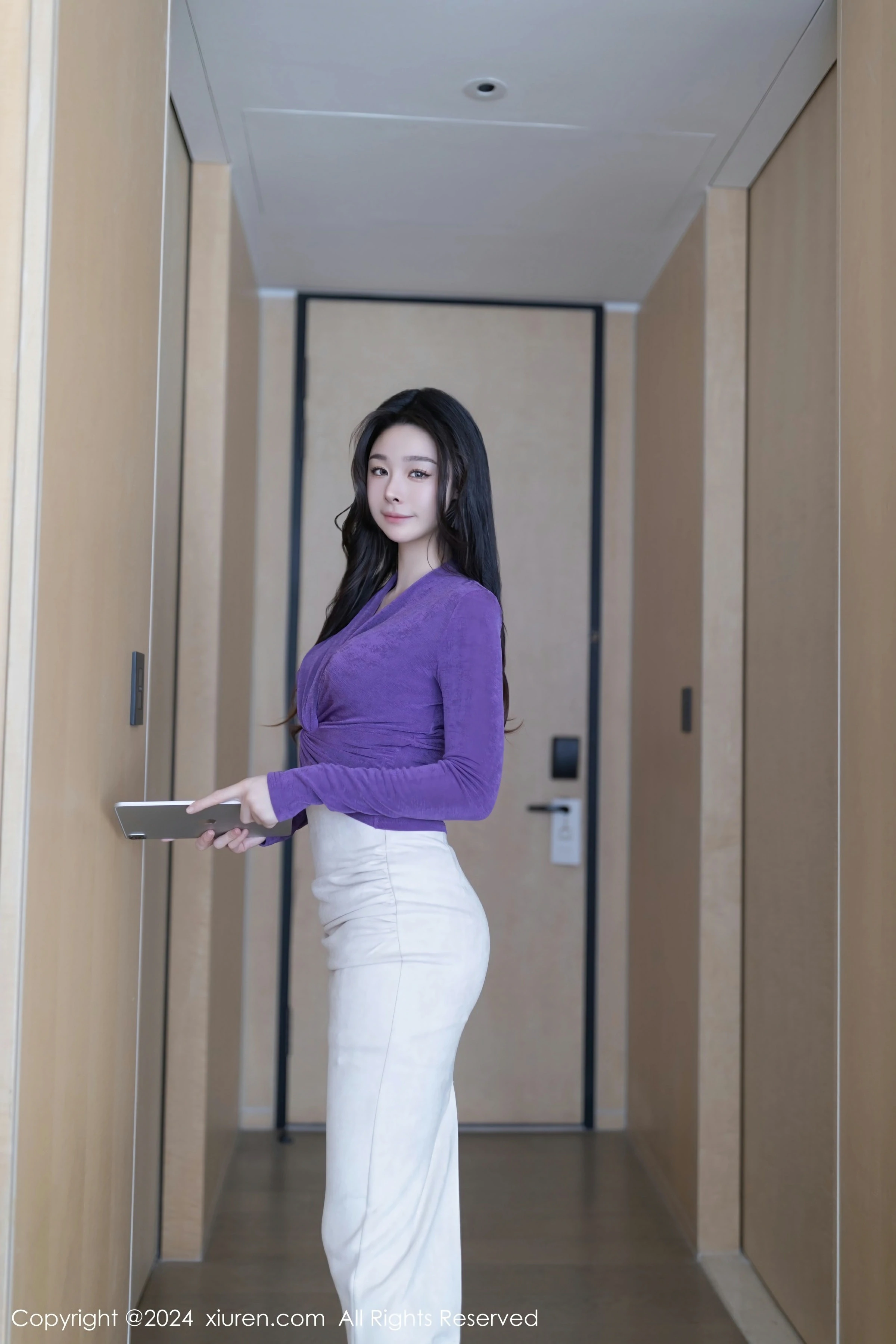 这次写真中,@小逗逗穿着一件性感的紫色上衣搭配白色裙子,展现出一种高贵典雅的气质。紫色的上衣彰显出她不羁中的神秘感,而白色的裙子则散发出一种清新与纯净的美。整体搭配让人眼前一亮,不禁让人期待着更多@小逗逗的惊喜。